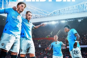 曼城官方社媒发布了为此役制作的海报,德布劳内、马尔穆什、萨维尼奥、尼科-冈萨雷斯出镜。