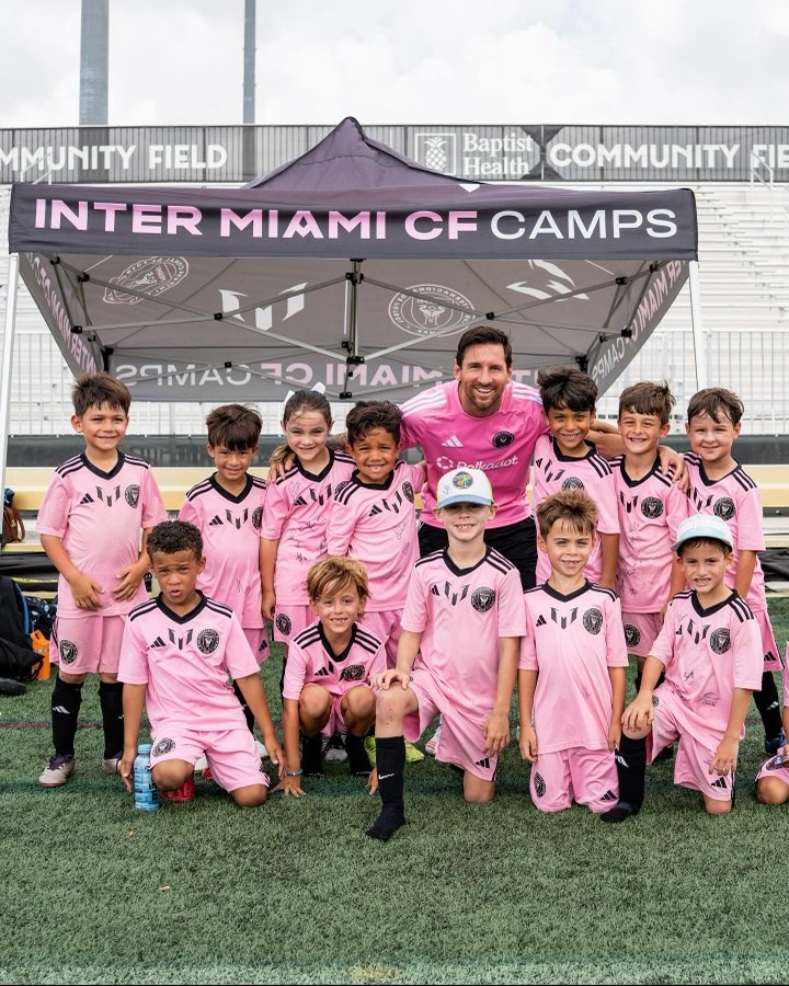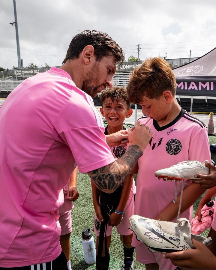 在迈阿密国际青训基地的活动中,梅西不仅与小球员们亲切交流,还满足了他们的签名及合影请求。